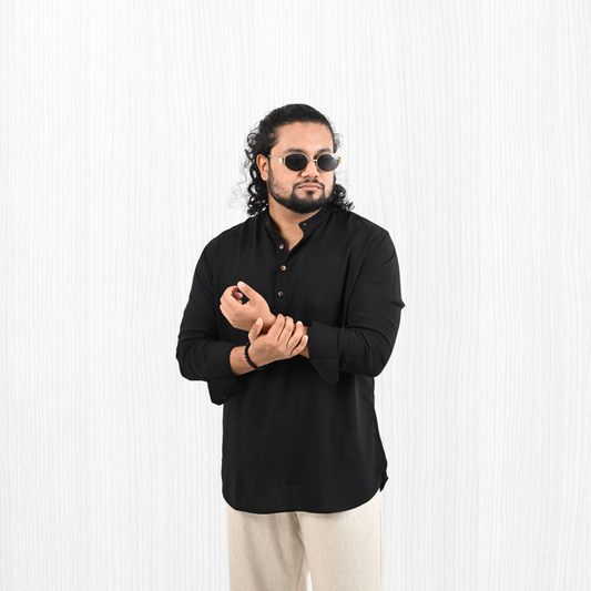 A sleek Katua featuring a classic buttoned neckline with a refined Henley...