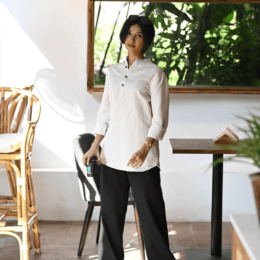 A sleek Katua with a classic buttoned neckline, henley collar blending comfort...