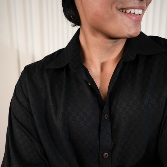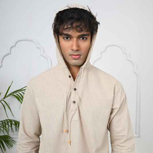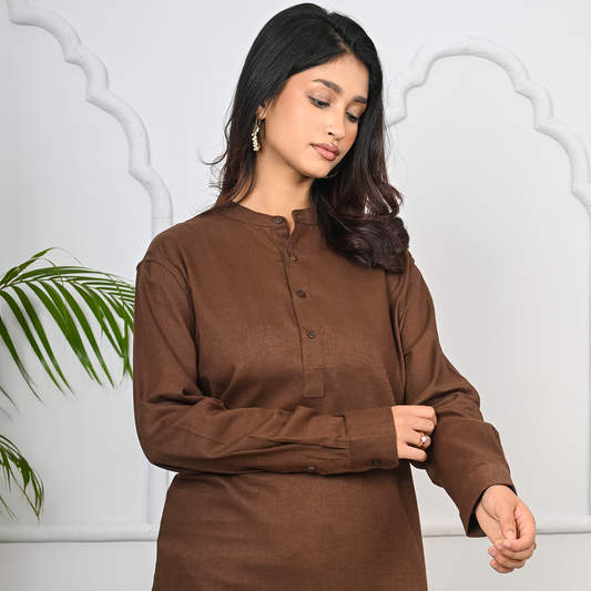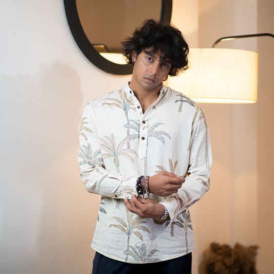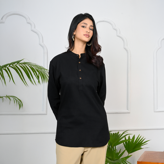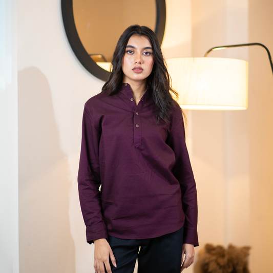 A sleek Katua featuring a classic buttoned neckline with a refined Henley...