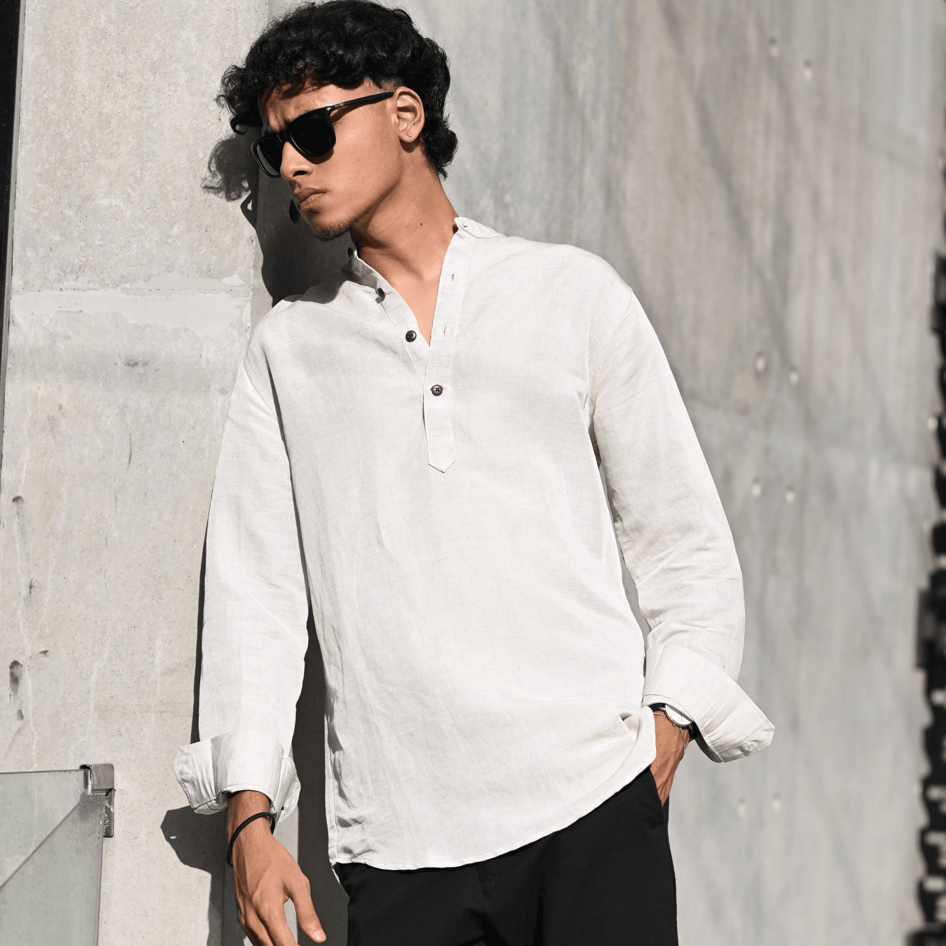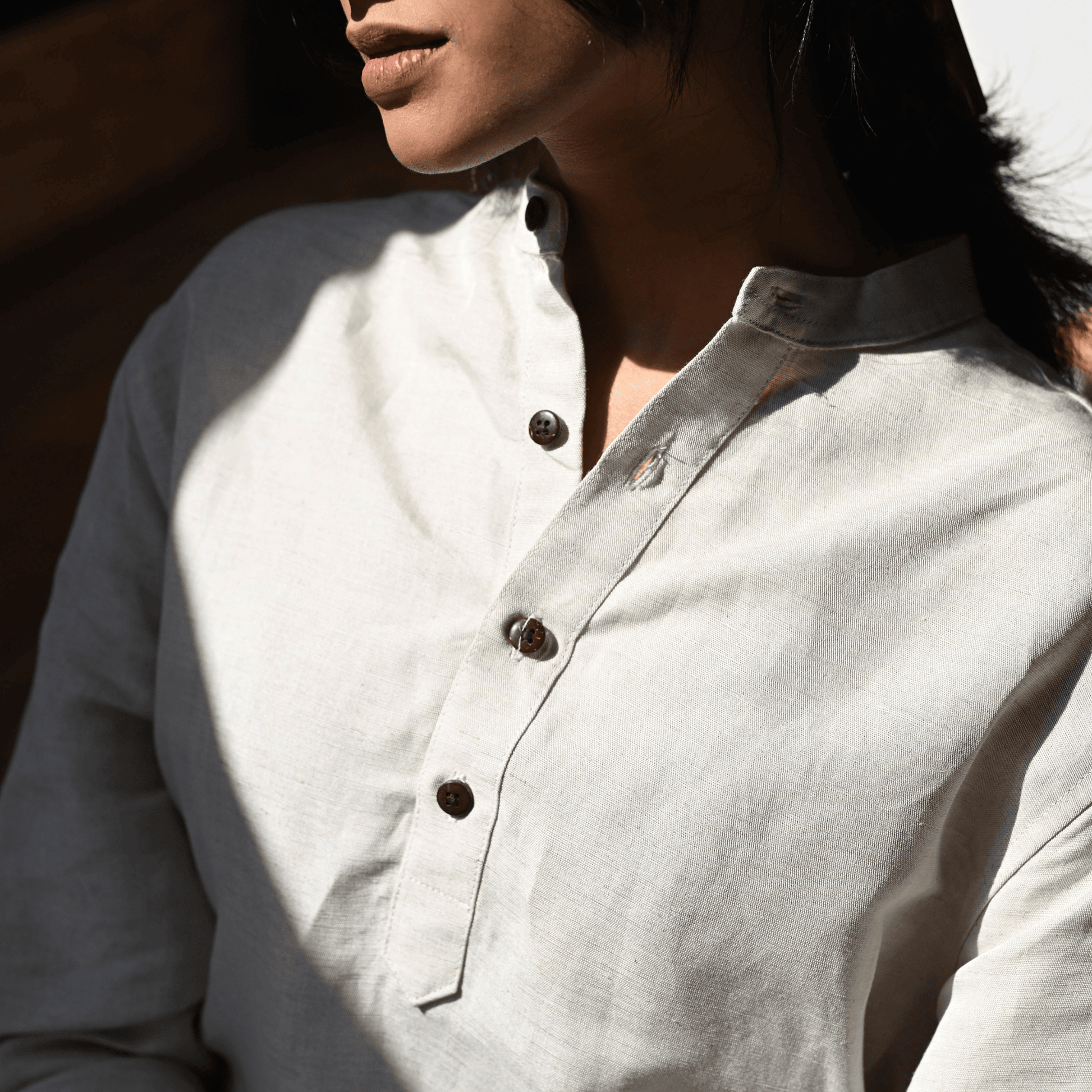 Soft cotton blend fabric ensures comfort, and wooden buttons add a classy natural detail.