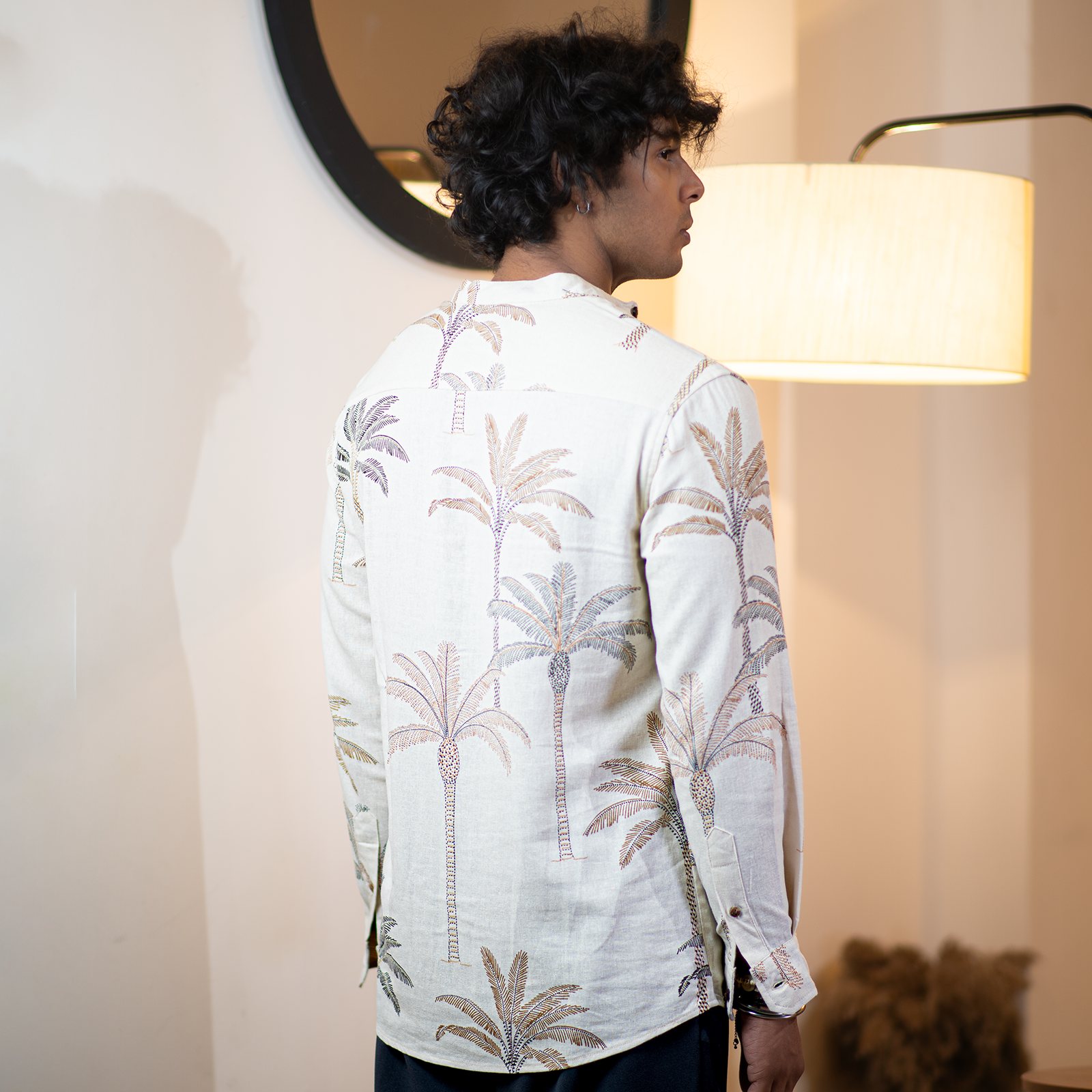 A refined fusion of heritage and modern style. This piece features a muted Sandstone base accented with a minimalist Date Palm motif, creating a look that is both organic and upscale.Crafted from a premium Khaki the fabric offers a rich, tactile feel with excellent structure.