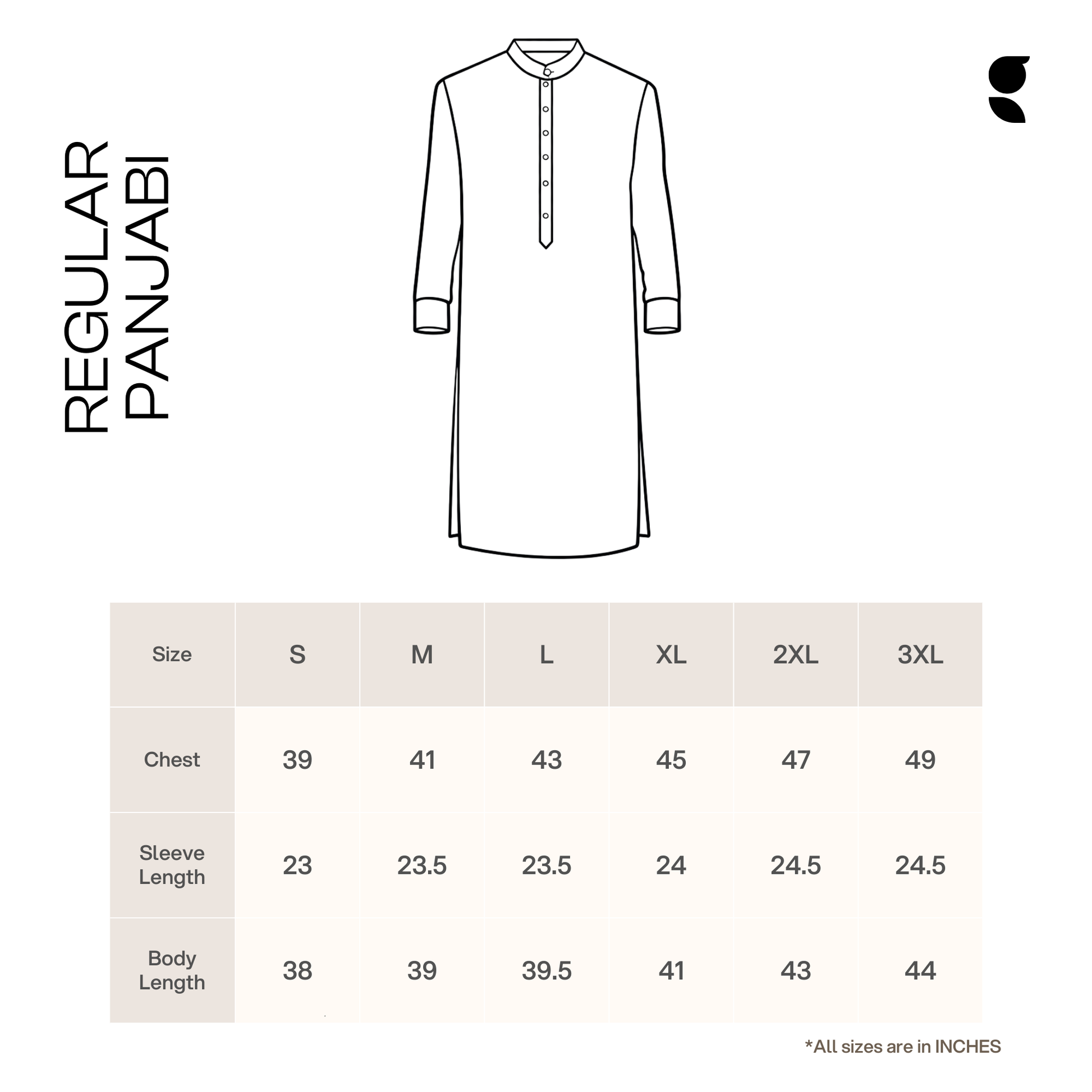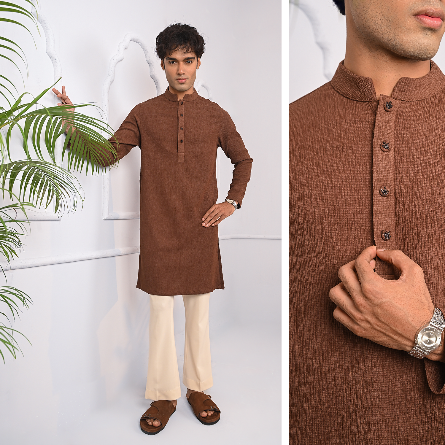 This Mocha Panjabi is designed to blend warm earthy tones with modern sophistication. Crafted from premium cotton crepe fabric and finished with fine handcrafted Karchupi detailing, it offers a graceful silhouette with superior comfort perfect for festive and formal occasions.
