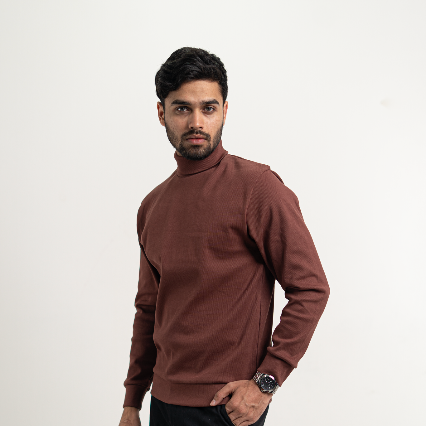 The Chocolate Brown Turtle Neck adds richness to your wardrobe with a premium ribbed build and clean high-neck finish. Strong color, premium feel, timeless style.