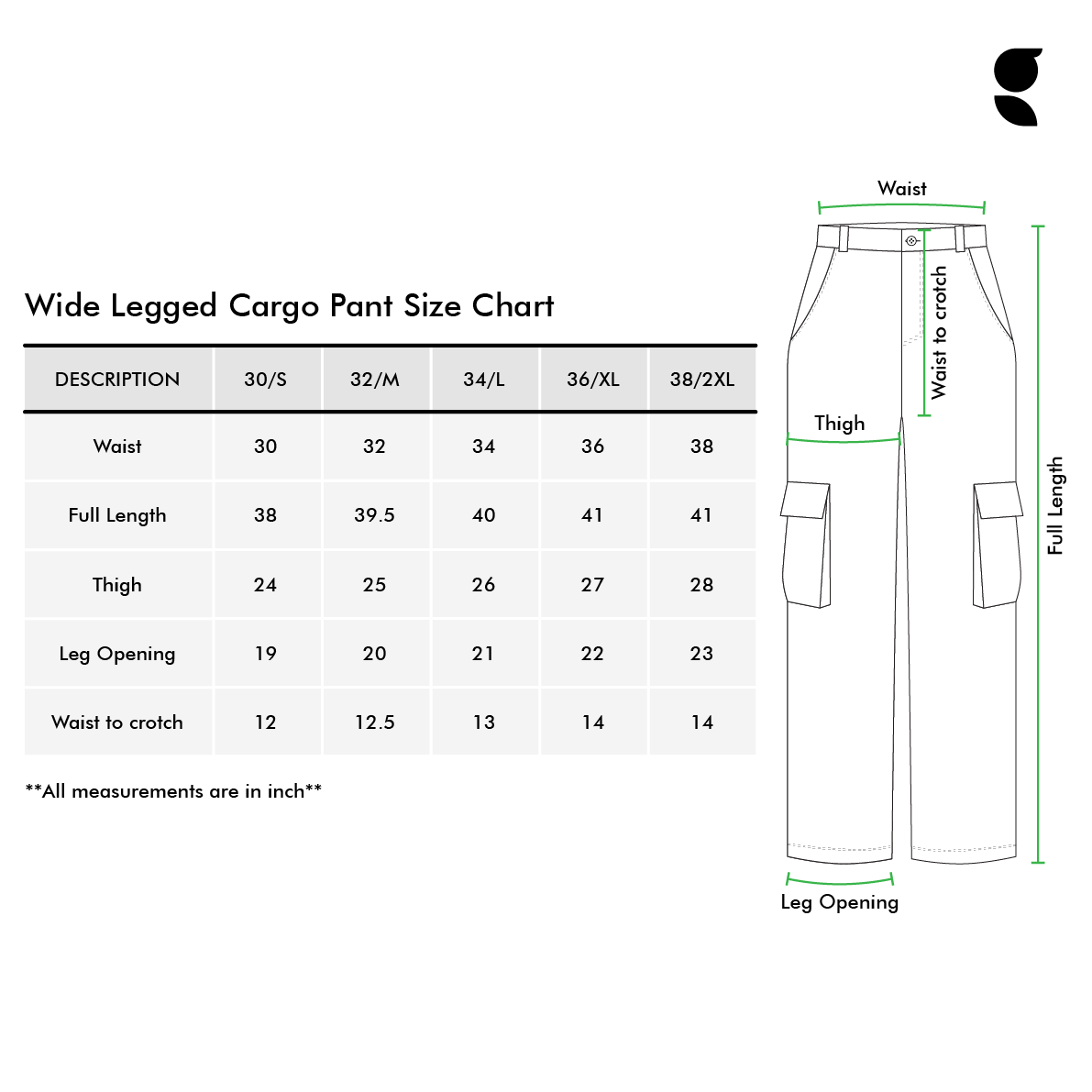 Key points for Wide Legged Cargo Pant: